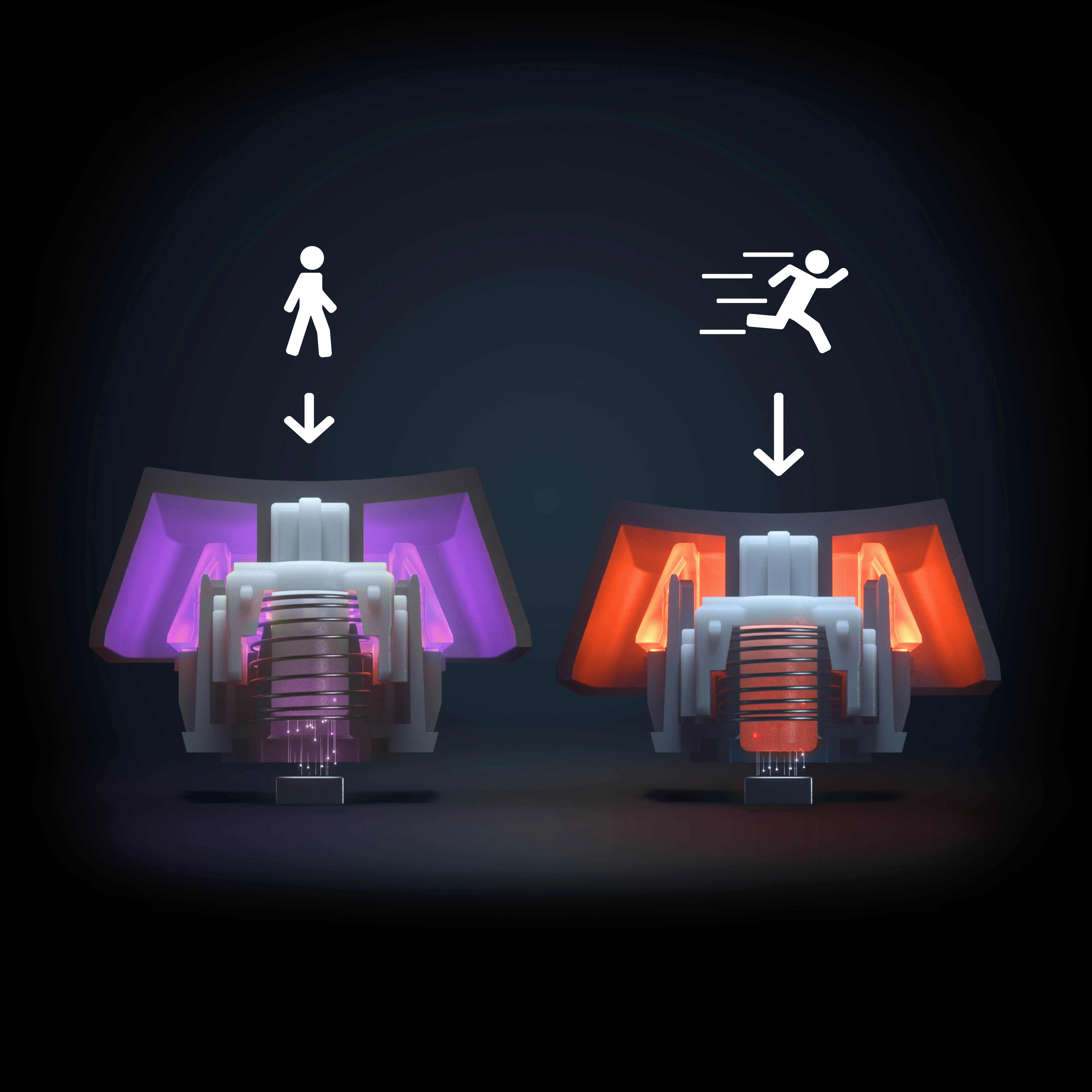 A kompakt forma mellett a világ leggyorsabb switcheinél fejlesztések is megjelennek. A 0,2 mm és 3,8 mm között működő OmniPoint 2.0 switch most gyorsabb reakció- és működési időt biztosít, valamint minden eddiginél szélesebb beállítási lehetőséget kínál. 0,2 mm-re állítva, 0,54 ms-os válaszidővel a világ leggyorsabb billentyűleütéseit kínálja*. Továbbá az OmniPoint 2.0 bevezetésével megjelent Dual Action billentyűleütés is, amivel egyetlen gombra két műveletet programozhatunk be a kombinációkért, például séta és futás, vagy gránát megfogása és eldobása, mindezt egyetlen gombnyomással.