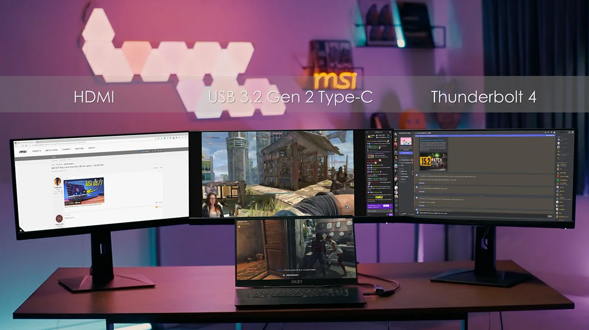 A Stealth GS77 akár 17,3 hüvelykes, 4K 120 Hz-es kijelzővel is elérhető, amely 100%-os DCI-P3 gyári kalibrálással is elérhető. Ha azonban valaki a nagyobb képfrissítést részesíti előnyben, akkor 360 Hz-es Full HD vagy 240 Hz-es QHD IPS-szintű panellel is megvásárolhatja a laptopot. Az eltérő lehetőségek mellett a GS77 támogatja a „Matrix Display” technológiát, amely lehetővé teszi akár 3 további monitor csatlakoztatását a laptophoz a HDMI, az USB 3.2 Gen 2 Type-C és a Thunderbolt 4 port segítségével.
